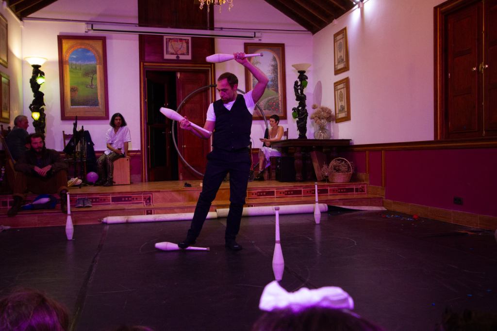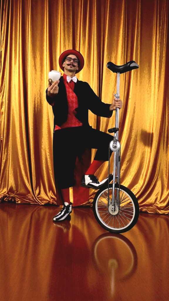 Es un espectáculo cercano, de esos que se sienten como cuando el sol de invierno calienta la cara. Aquí todo ocurre cerquita: las torpezas que se convierten en milagros, los equilibrios que rozan la magia, las carcajadas que se contagian sin pedir permiso. Tadeo invita a viajar sin moverse, a imaginar sin límites y a descubrir que, a veces, la mayor aventura cabe dentro de una carpa y empieza con una simple sonrisa.”