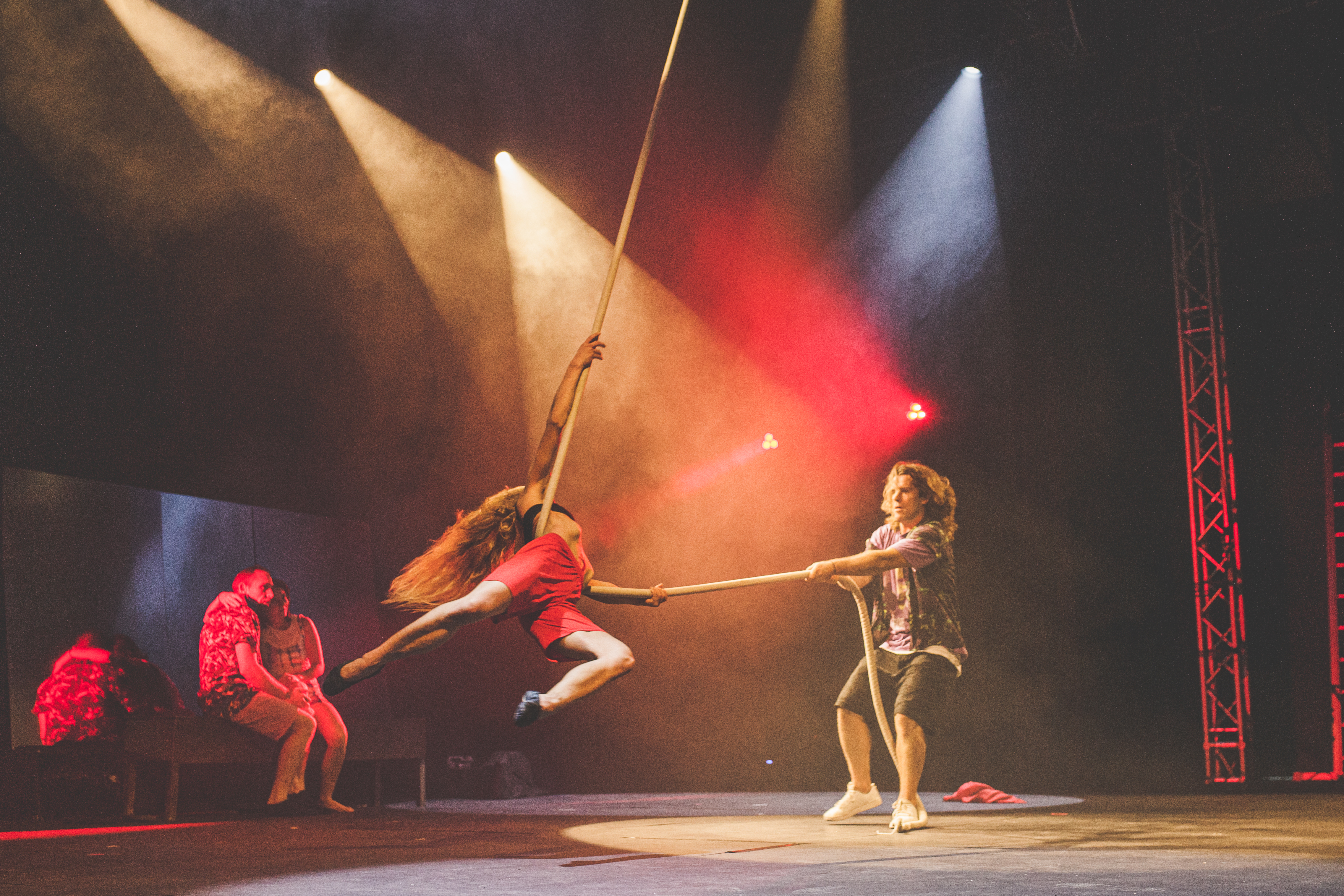 “TEACUERDAS”, instalación y espectáculo de circo contemporáneo, espera crear conciencia sobre los residuos que se encuentran en el mar, cuerdas y redes utilizadas en la industria pesquera, que impactan el océano, costas e Islas. (640.000toneladas métricas de aparejos de pesca se pierden anualmente en todo el mundo). La instalación escénica ofrecerá al público una experiencia inmersiva mediante un potente espectáculo de circo y danza, que utiliza estas cuerdas como medio principal para activar en los espectadores todos sus sentidos; olfato, tacto y oído. Se estimularán los sentidos para invitar a la reflexión sobre el papel de la conservación de los océanos y lo efímero de la belleza.